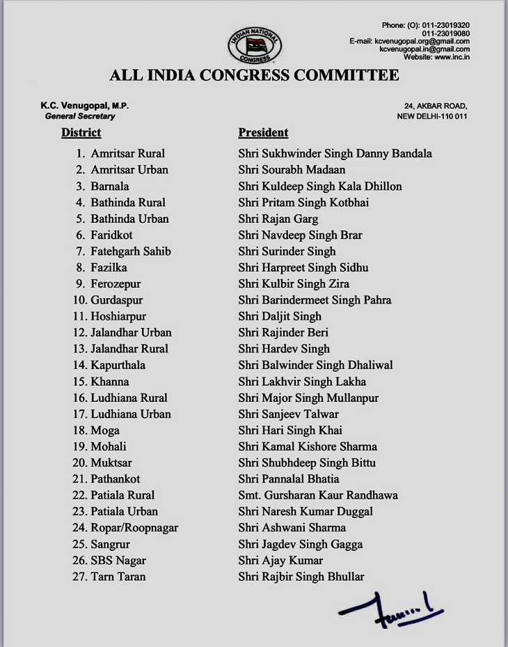 कांग्रेस द्वारा इन लोगों को सौंपी गई जिलों की जिम्मेदारी