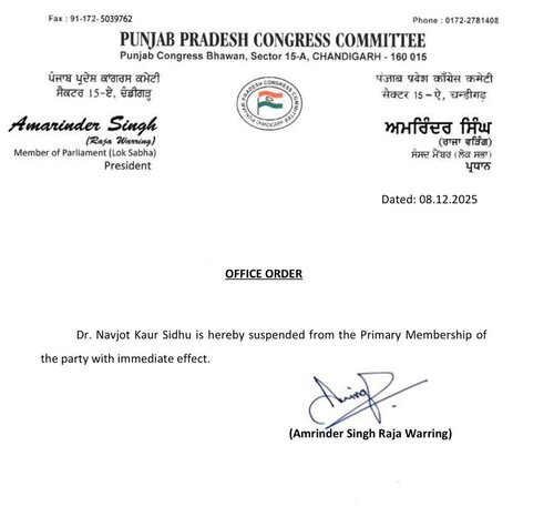 नवजोत कौर सिद्धू को सस्पेंड करने का ऑर्डर…